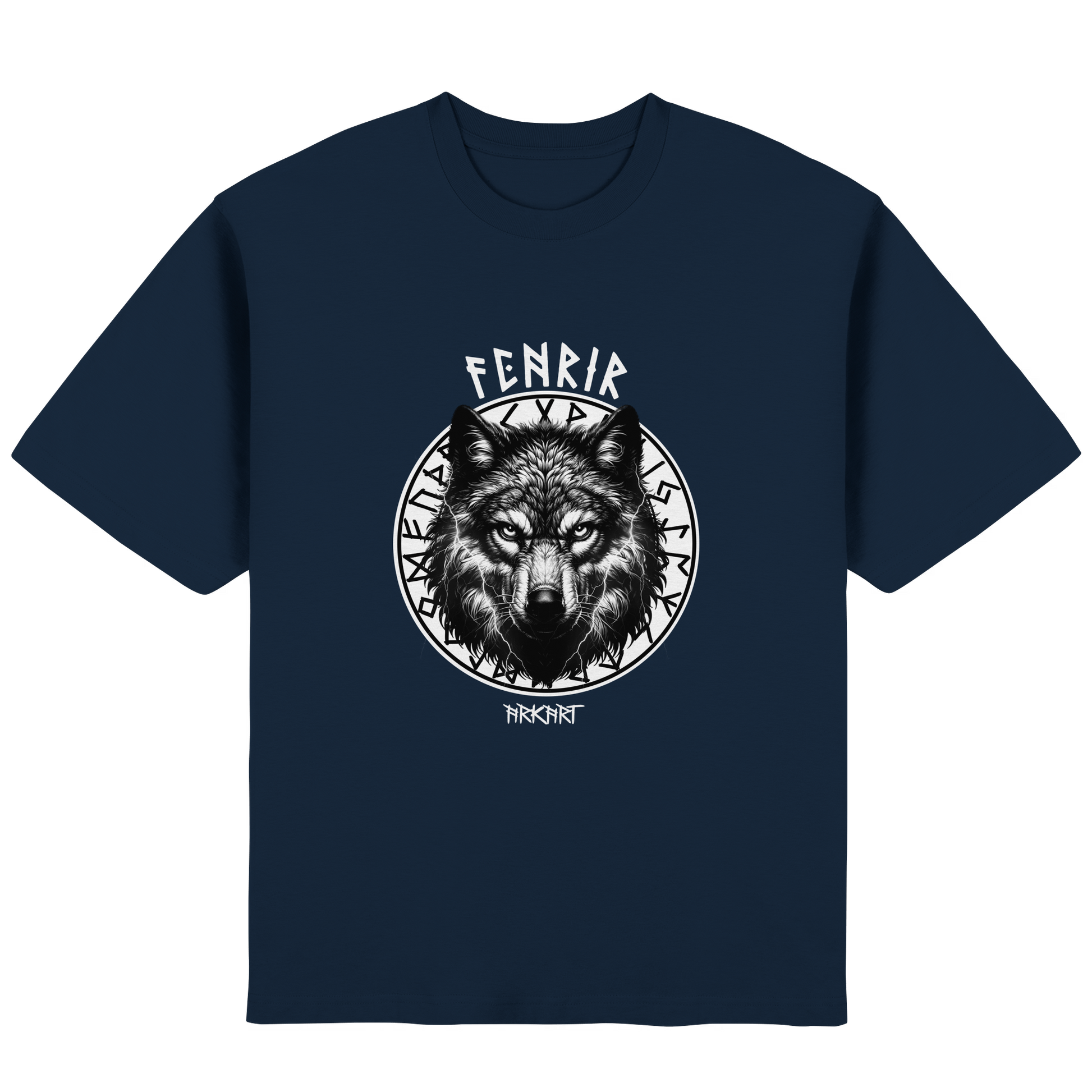 Der Fenriswolf - Die entfesselte Macht der nordischen Mythologie Der Fenriswolf (Fenrir) ist eines der gewaltigsten und furchteinflößendsten Wesen der nordischen Sagenwelt. Als Sohn des Gottes Loki und der Riesin Angrboda wurde er von den Göttern gefürchtet, denn es war prophezeit, dass er eine Schlüsselrolle beim Ragnarök - dem Ende der Welt - spielen würde. Um seine zerstörerische Kraft zu bändigen, fesselten ihn die Götter mir der magischen Kette Gleipnir. Doch Fenrir steht nicht nur für Zerstörung, sondern auch für unabhängige Freiheit, rohe Kraft und den Mut, jede Fessel zu sprengen. Er verkörpert den unzähmbaren Geist, der sich nicht unterwerfen lässt. Er steht für Stärke, Freiheit und den Mut, sein Schicksal selbst in die Hand zu nehmen.