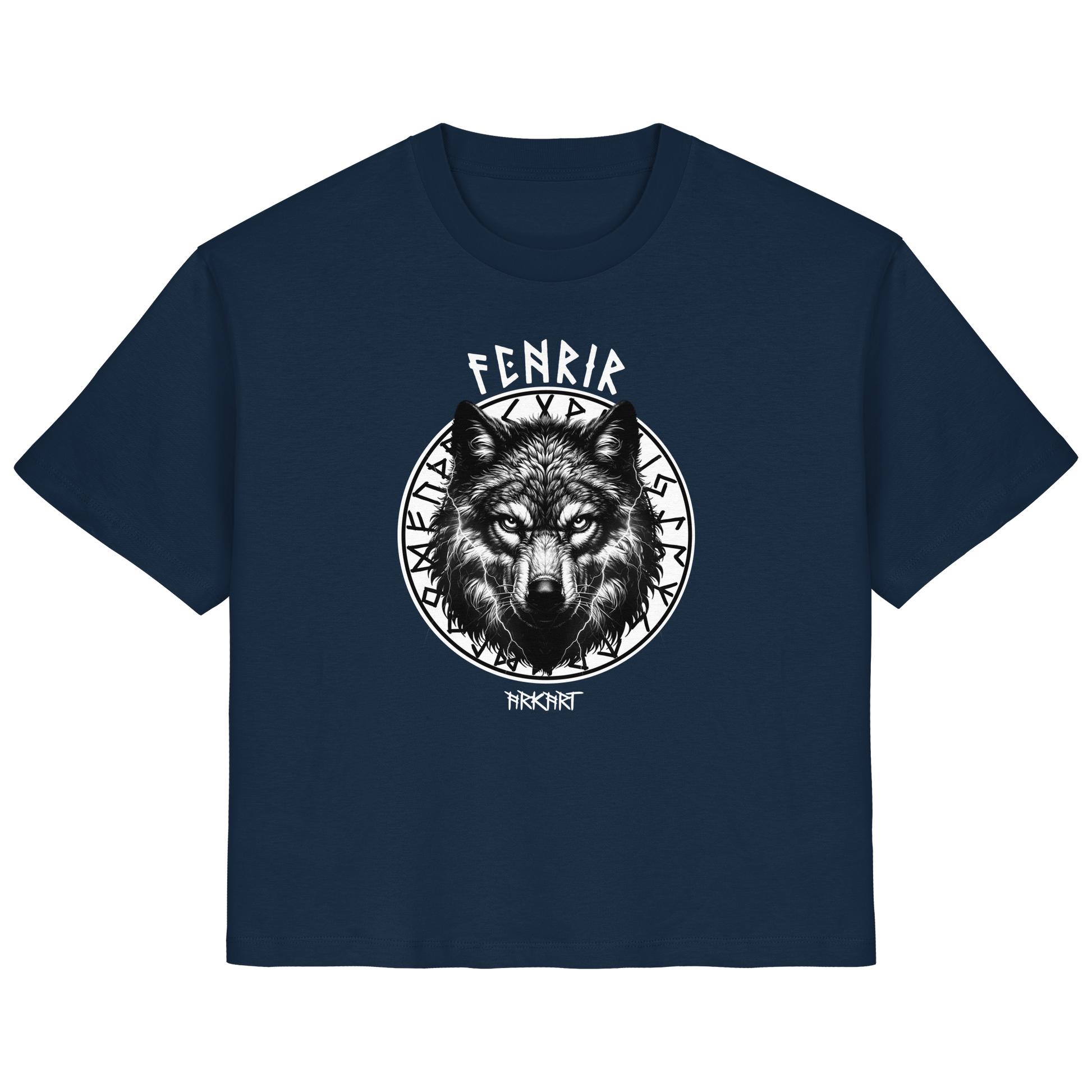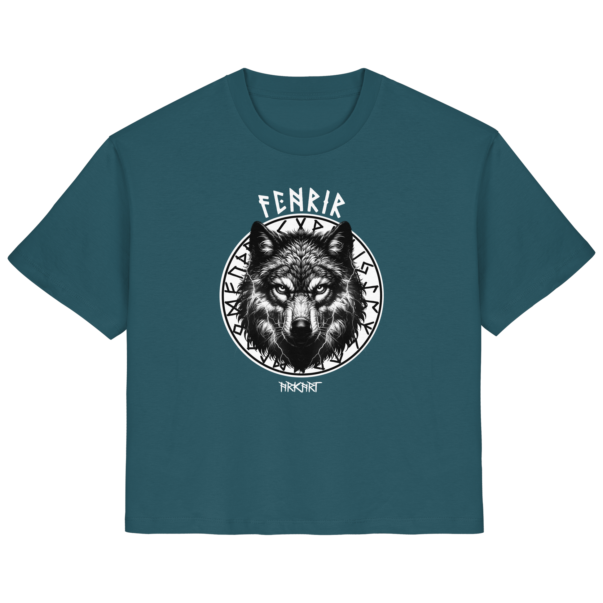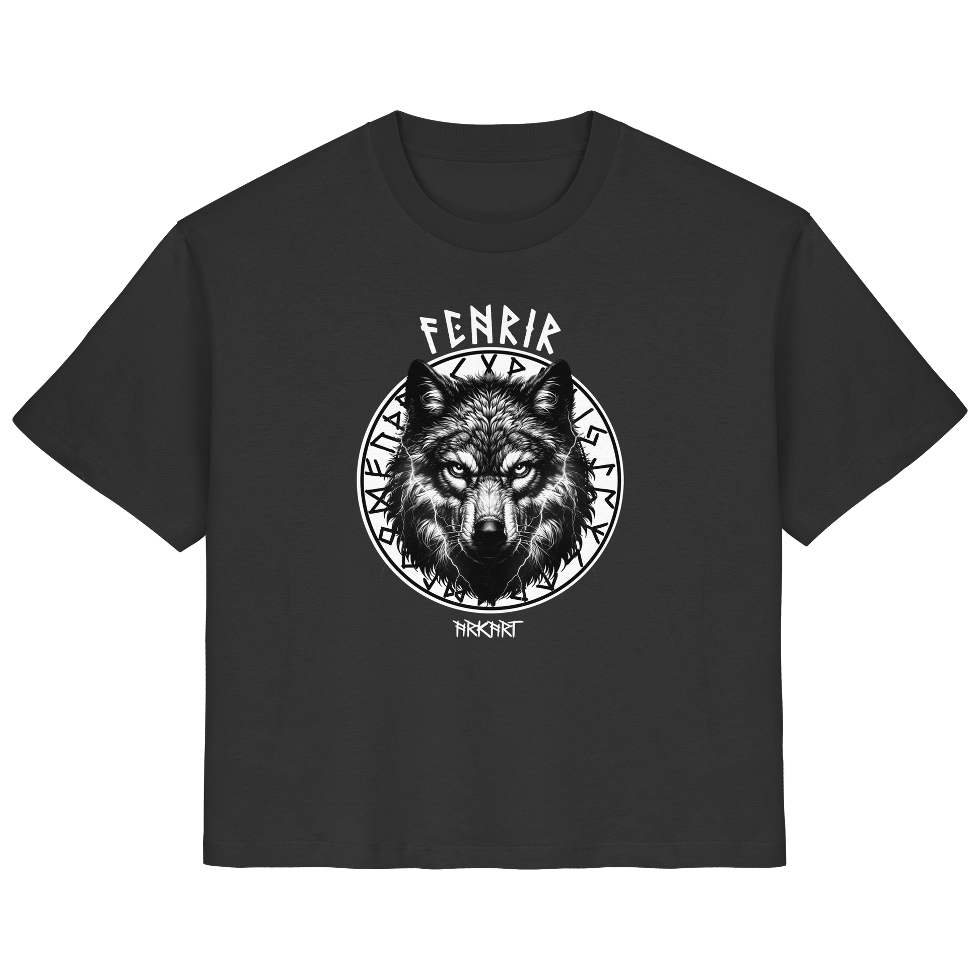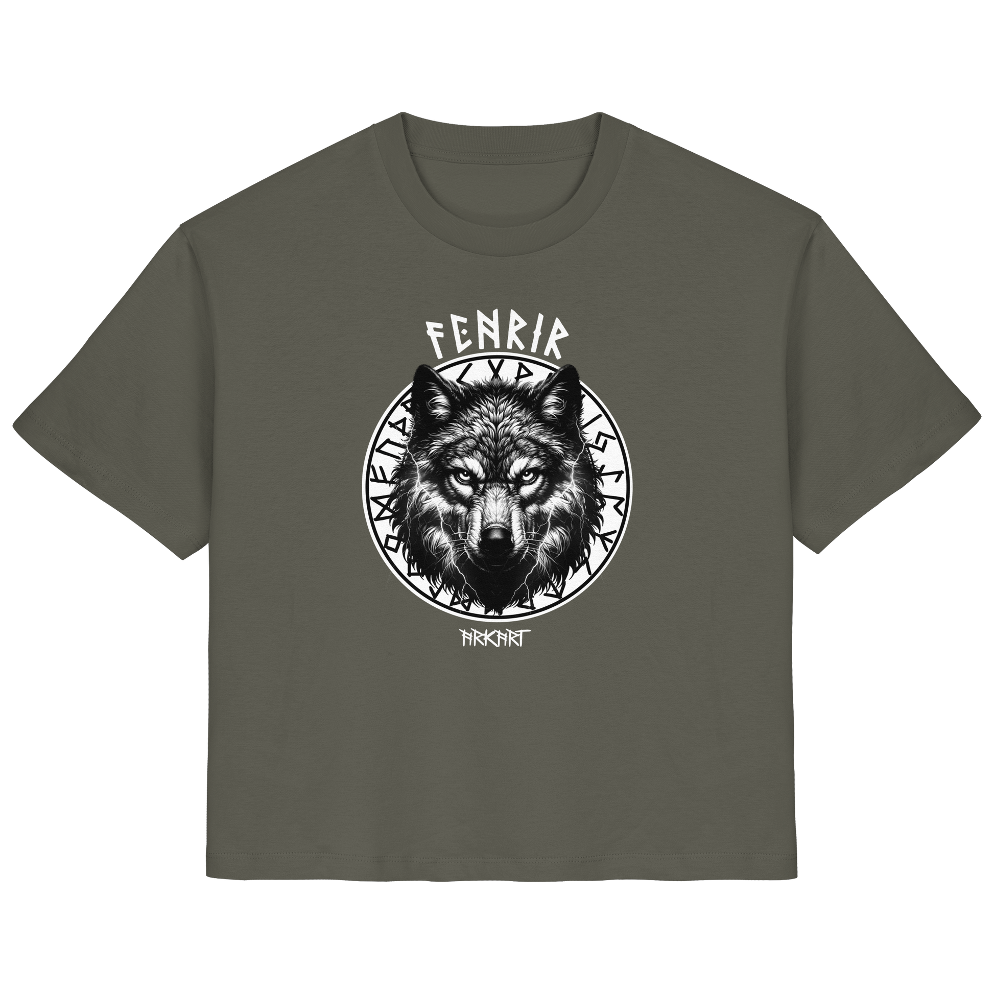 Der Fenriswolf - Die entfesselte Macht der nordischen Mythologie Der Fenriswolf (Fenrir) ist eines der gewaltigsten und furchteinflößendsten Wesen der nordischen Sagenwelt. Als Sohn des Gottes Loki und der Riesin Angrboda wurde er von den Göttern gefürchtet, denn es war prophezeit, dass er eine Schlüsselrolle beim Ragnarök - dem Ende der Welt - spielen würde. Um seine zerstörerische Kraft zu bändigen, fesselten ihn die Götter mir der magischen Kette Gleipnir. Doch Fenrir steht nicht nur für Zerstörung, sondern auch für unabhängige Freiheit, rohe Kraft und den Mut, jede Fessel zu sprengen. Er verkörpert den unzähmbaren Geist, der sich nicht unterwerfen lässt. Er steht für Stärke, Freiheit und den Mut, sein Schicksal selbst in die Hand zu nehmen.