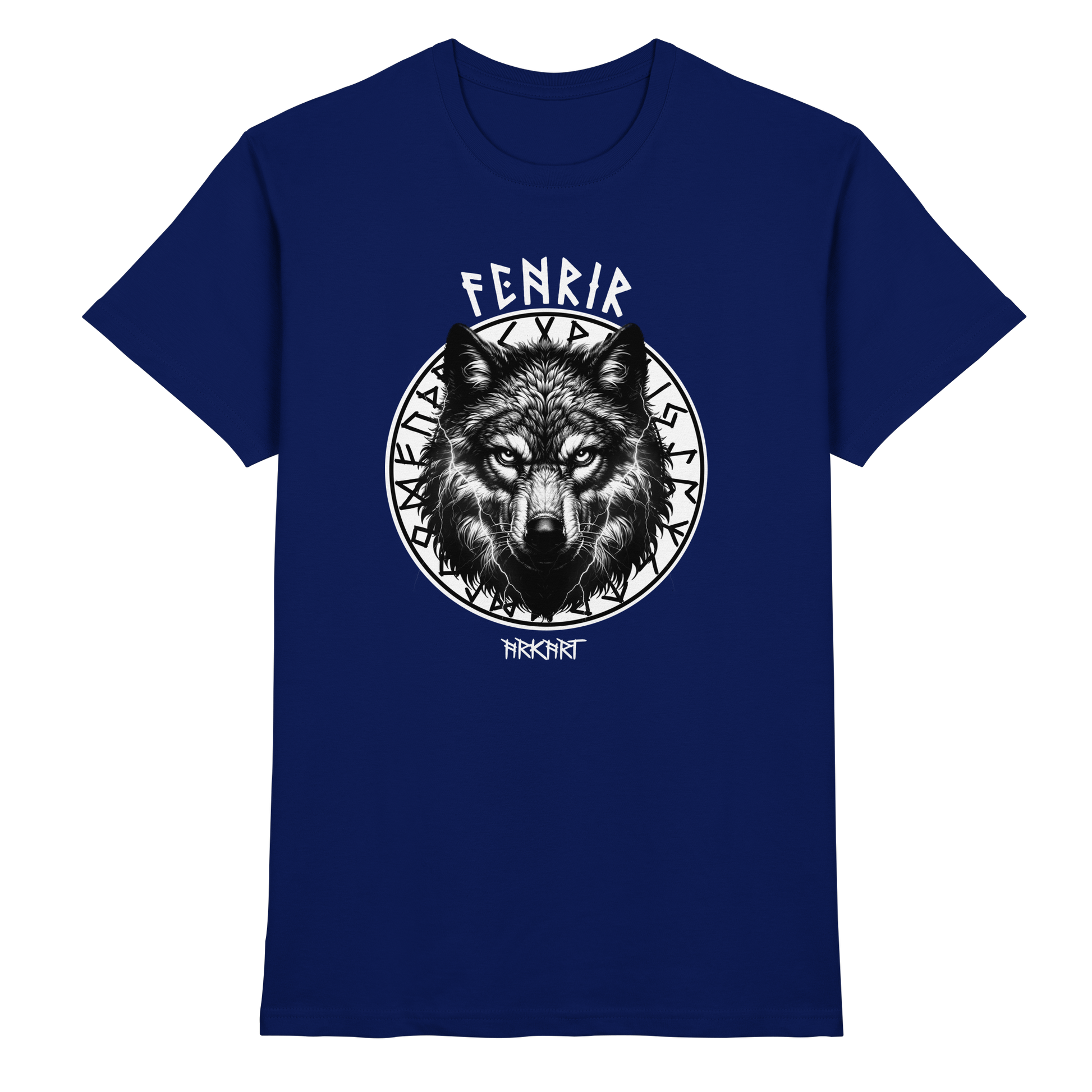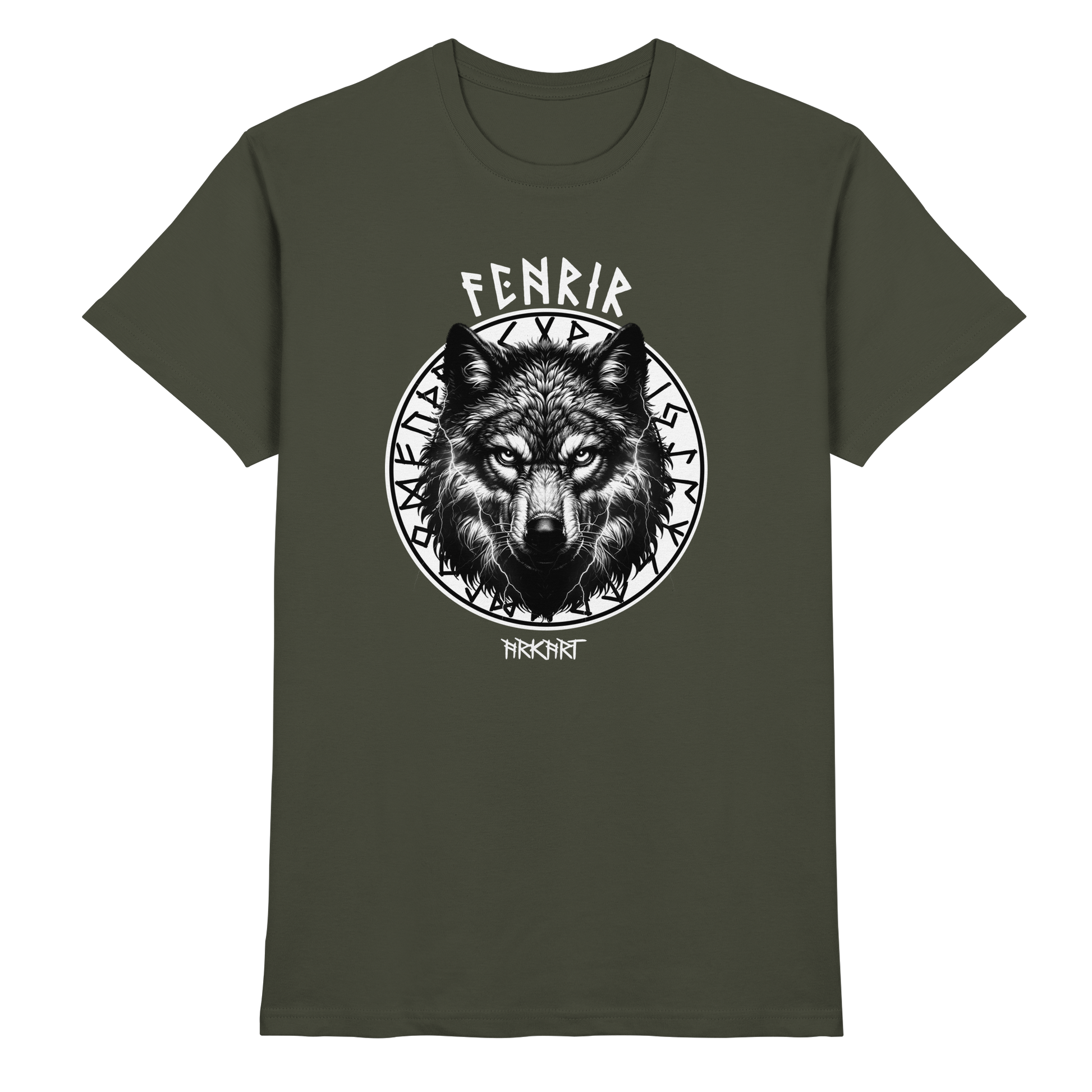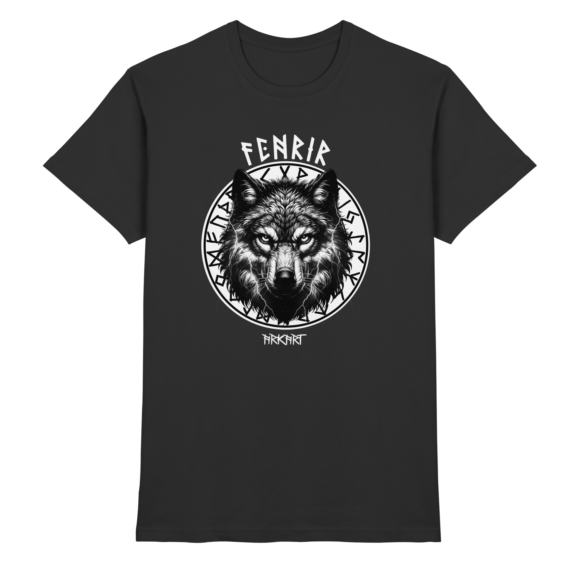 Der Fenriswolf - Die entfesselte Macht der nordischen Mythologie Der Fenriswolf (Fenrir) ist eines der gewaltigsten und furchteinflößendsten Wesen der nordischen Sagenwelt. Als Sohn des Gottes Loki und der Riesin Angrboda wurde er von den Göttern gefürchtet, denn es war prophezeit, dass er eine Schlüsselrolle beim Ragnarök - dem Ende der Welt - spielen würde. Um seine zerstörerische Kraft zu bändigen, fesselten ihn die Götter mir der magischen Kette Gleipnir. Doch Fenrir steht nicht nur für Zerstörung, sondern auch für unabhängige Freiheit, rohe Kraft und den Mut, jede Fessel zu sprengen. Er verkörpert den unzähmbaren Geist, der sich nicht unterwerfen lässt. Er steht für Stärke, Freiheit und den Mut, sein Schicksal selbst in die Hand zu nehmen.