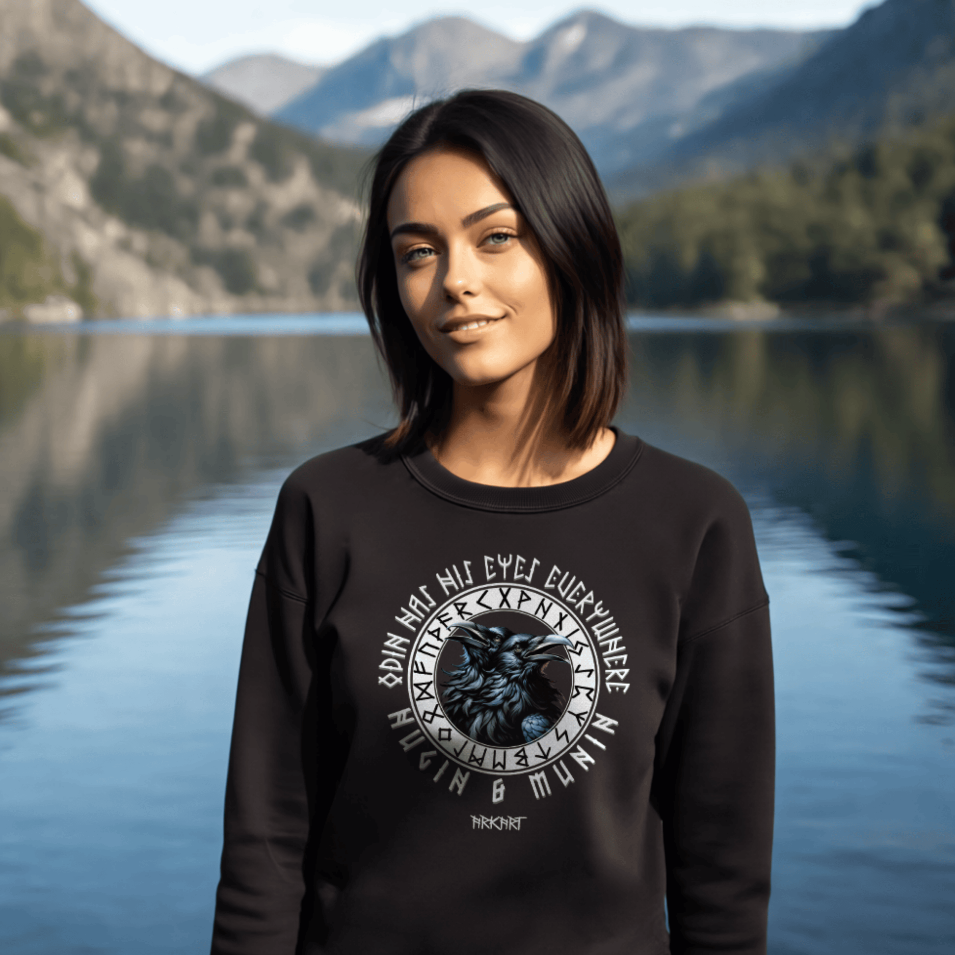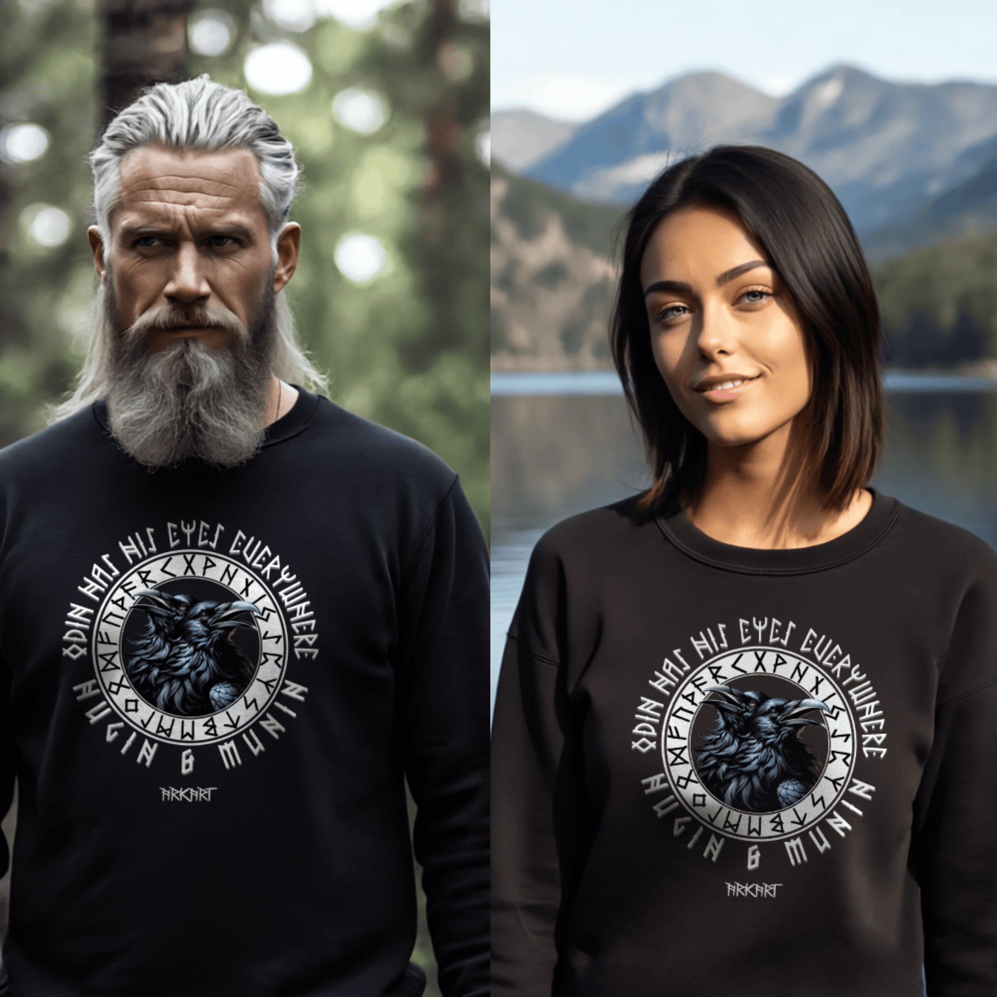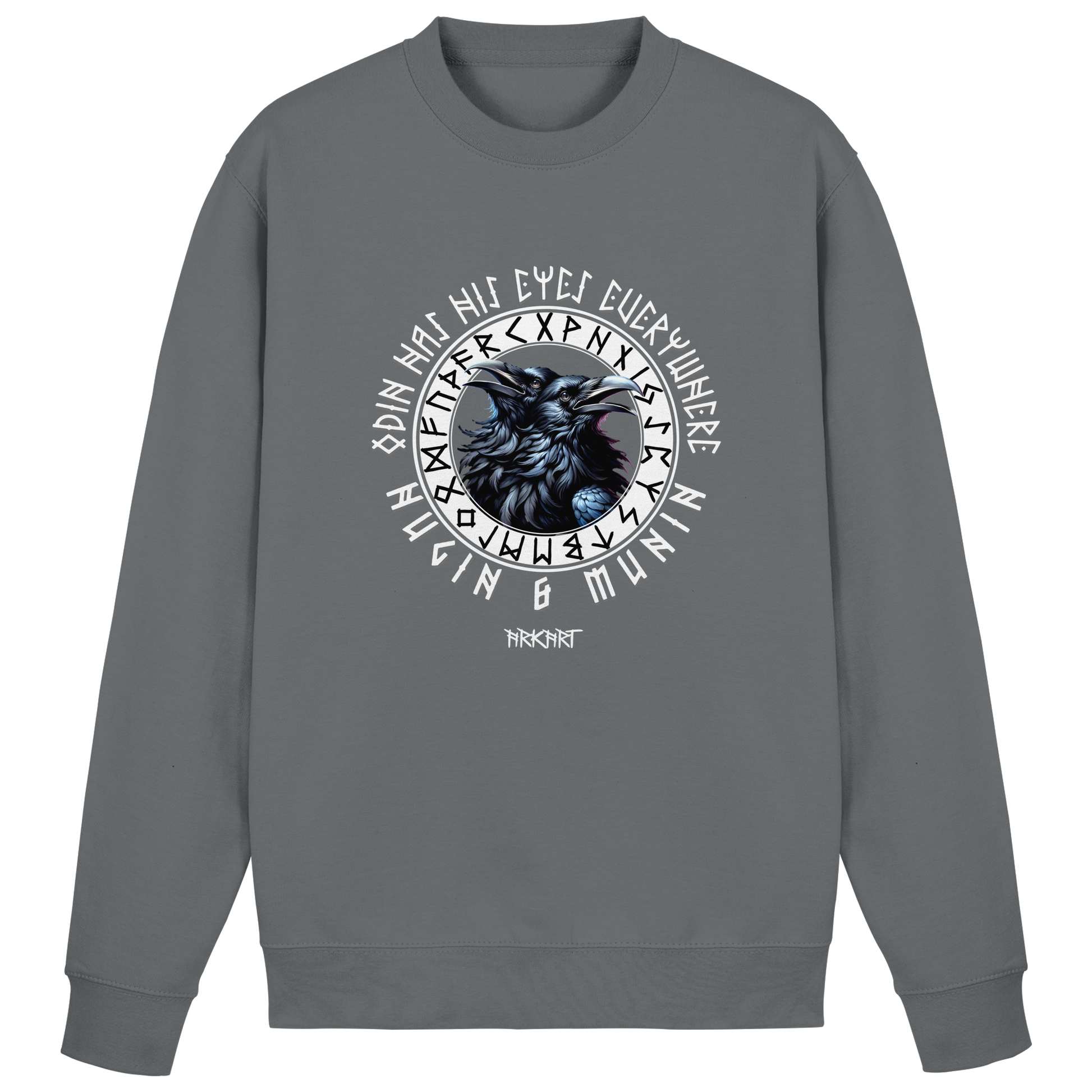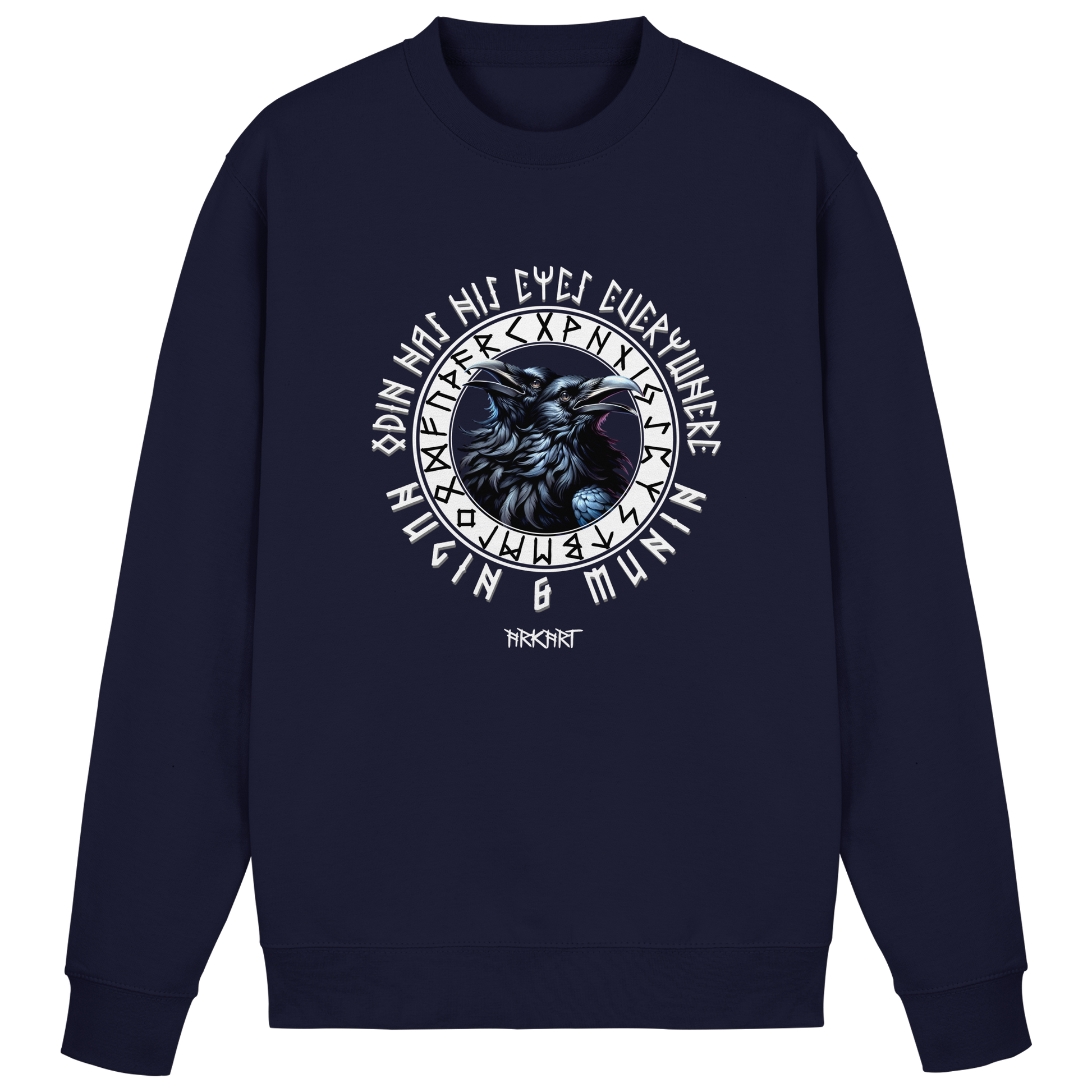 Die beiden Raben Hugin ("Gedanke") und Munin ("Erinnerung") sind treue Begleiter des Allvaters Odin. Jeden Tag fliegen sie hinaus in die Welt um Wissen und Nachrichten zu sammeln, die sie ihrem Herrn ins Ohr flüstern. In der nordischen Mythologie stehen sie für Weisheit und die Verbindung zwischen Geist und Erinnerung. Ein Shirt mit Hugin & Munin ist mehr als nur ein Motiv - es ist ein Symbol für Klarheit, Wissen und den Mut, die Welt mit offenen Augen zu betrachten.