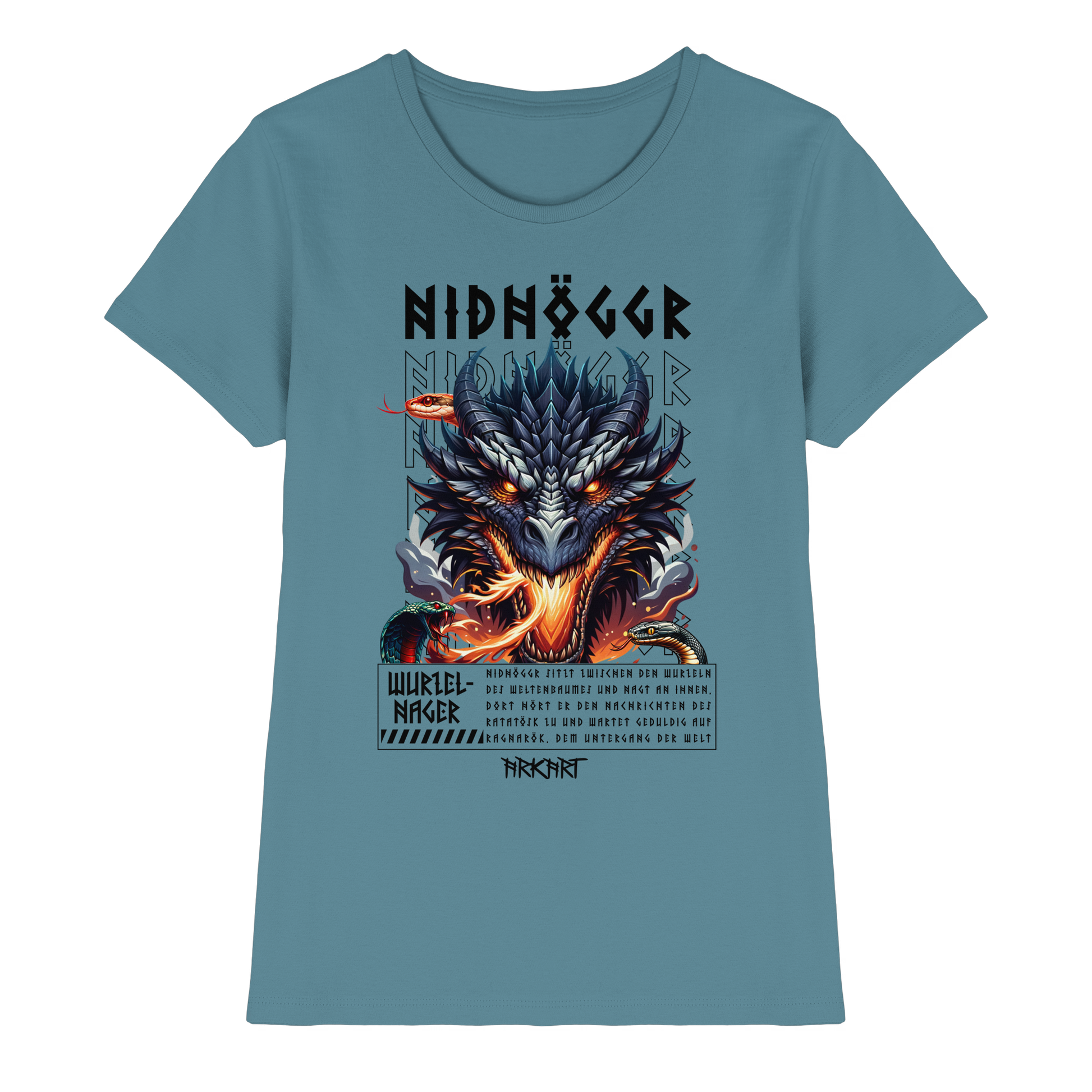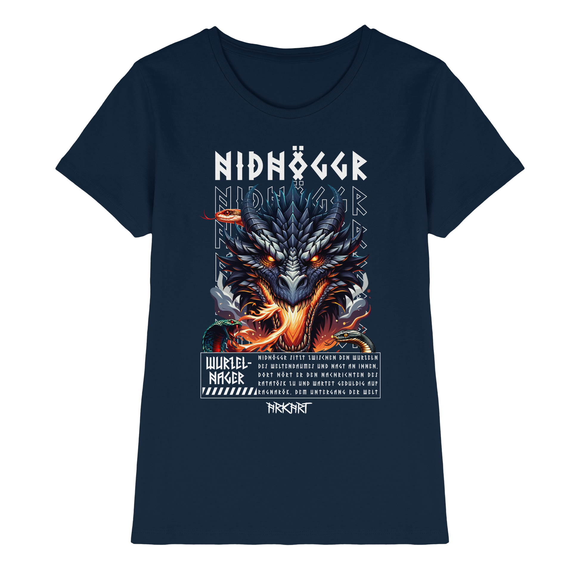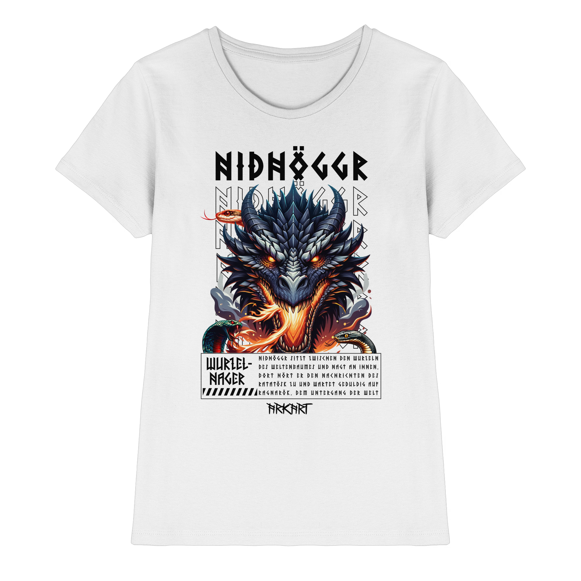 Als gewaltiger Drache lebt Nidhöggr zwischen den Wurzeln des Weltenbaumes Yggdrasil. Dort nagt er stetig an der dritten Wurzel des Baumes, direkt über der Quelle Hvergelmir in Niflheim die ebenso Heimat abertausender weiter Schlagen ist. Er hofft so den Baum zu schwächen und damit den Untergang der Welt, Ragnarök einzuleiten und aus Niflheim aufzusteigen. Währenddessen tauscht es über das Ratatösk Informationen - und gerne auch Beleidigungen - mit dem Adler in der Krone des Weltenbaumes aus.