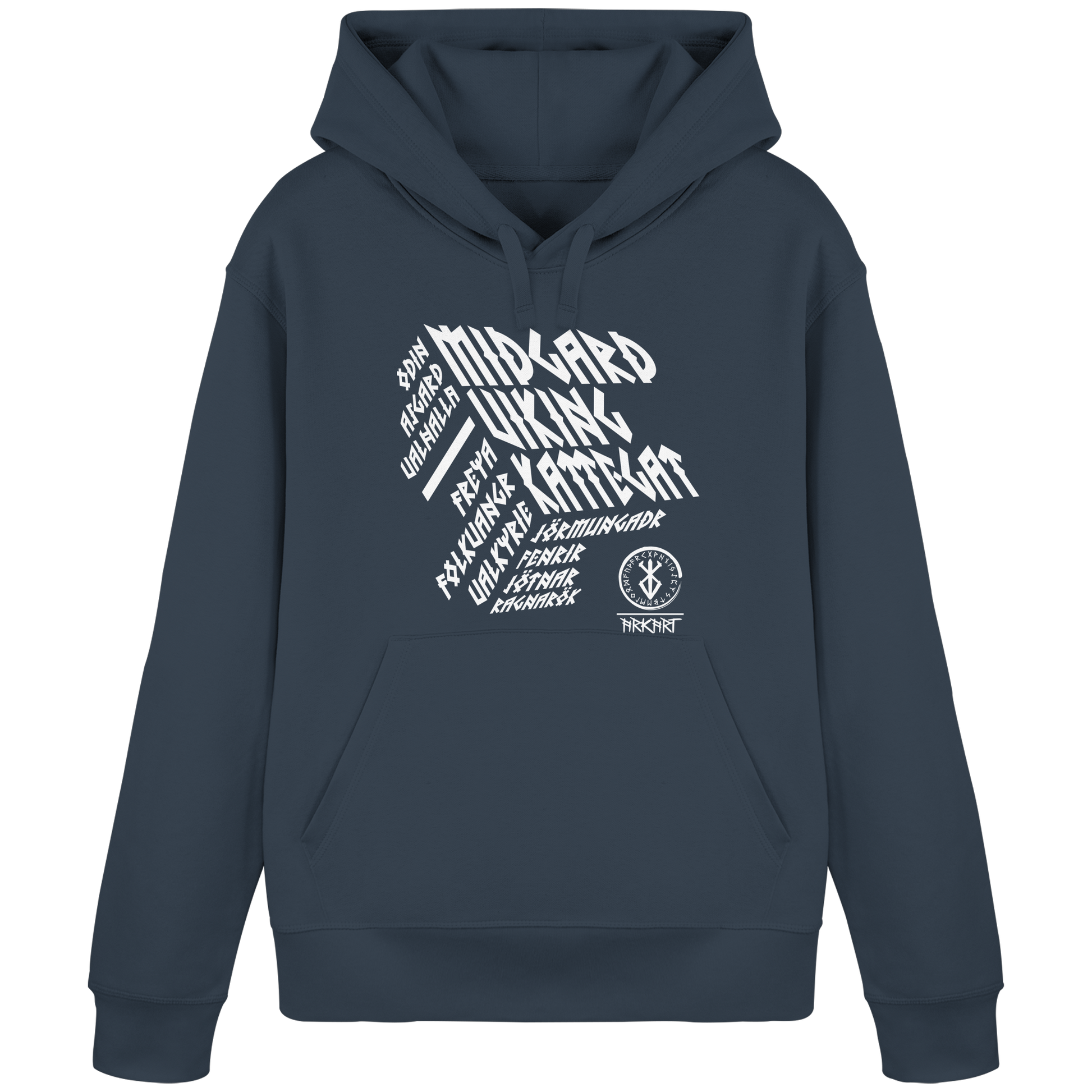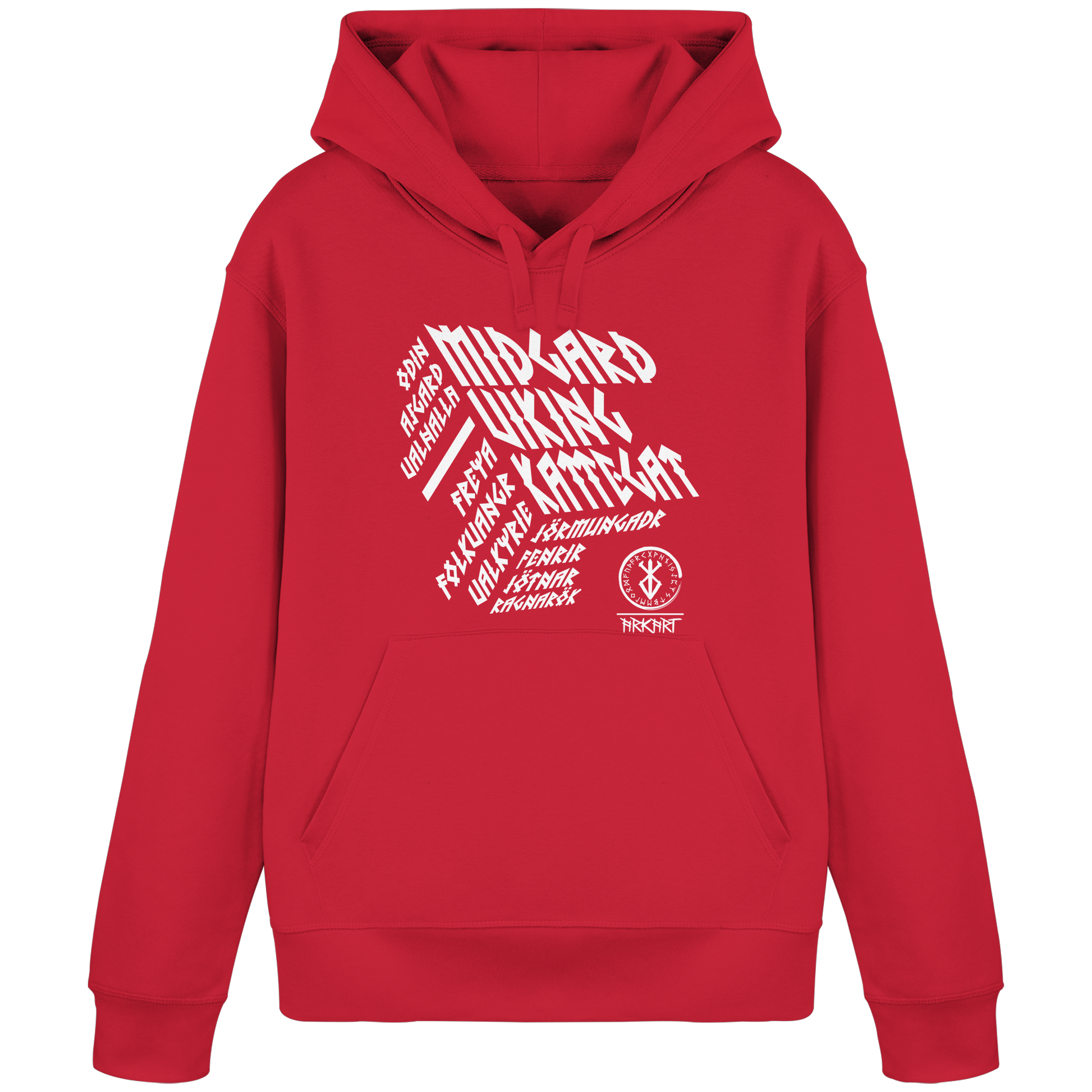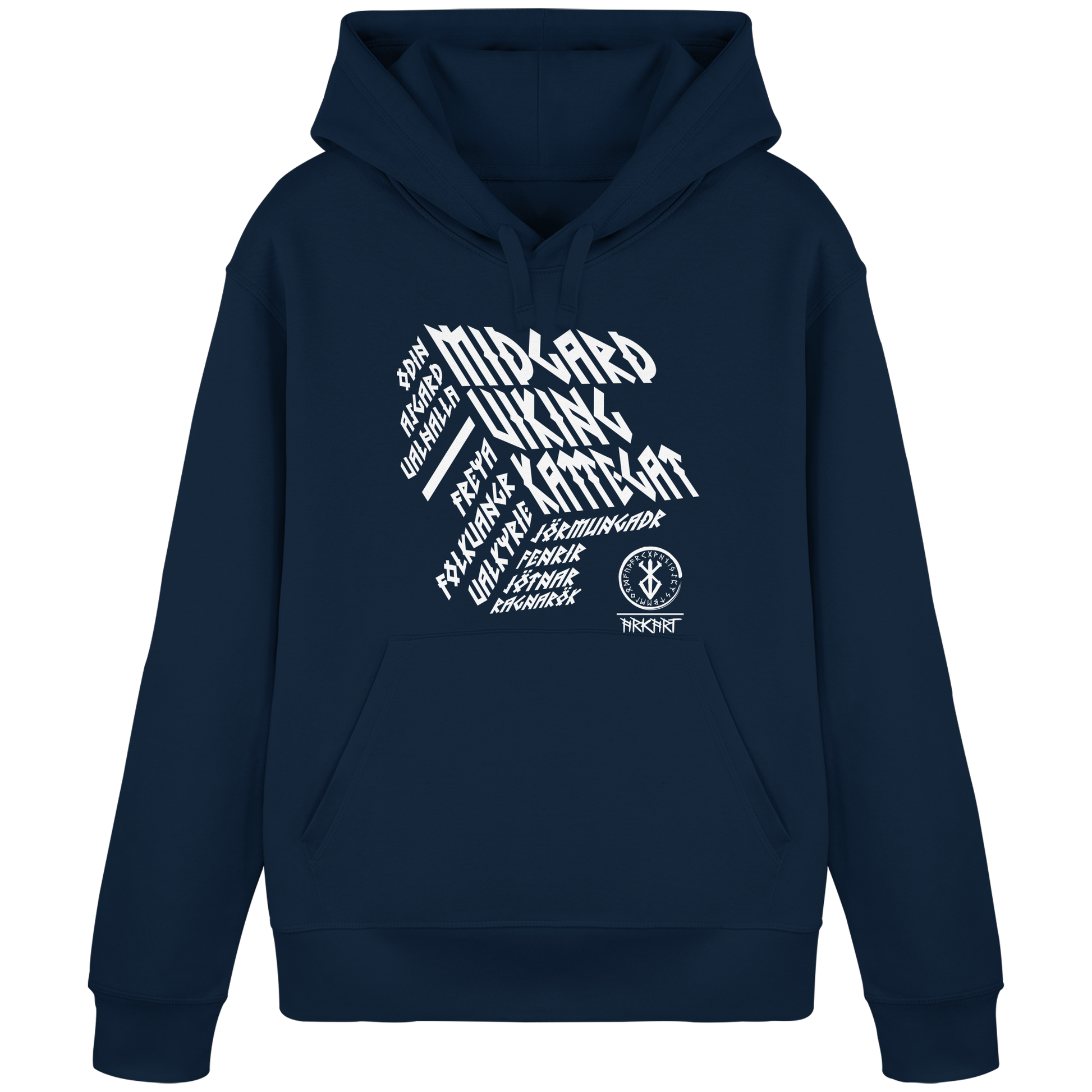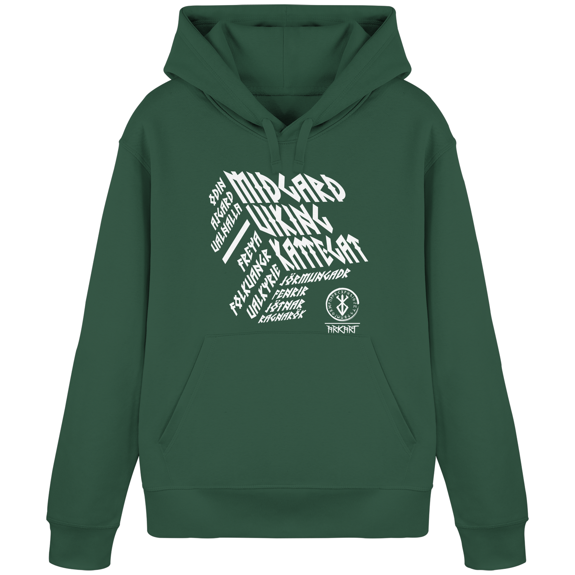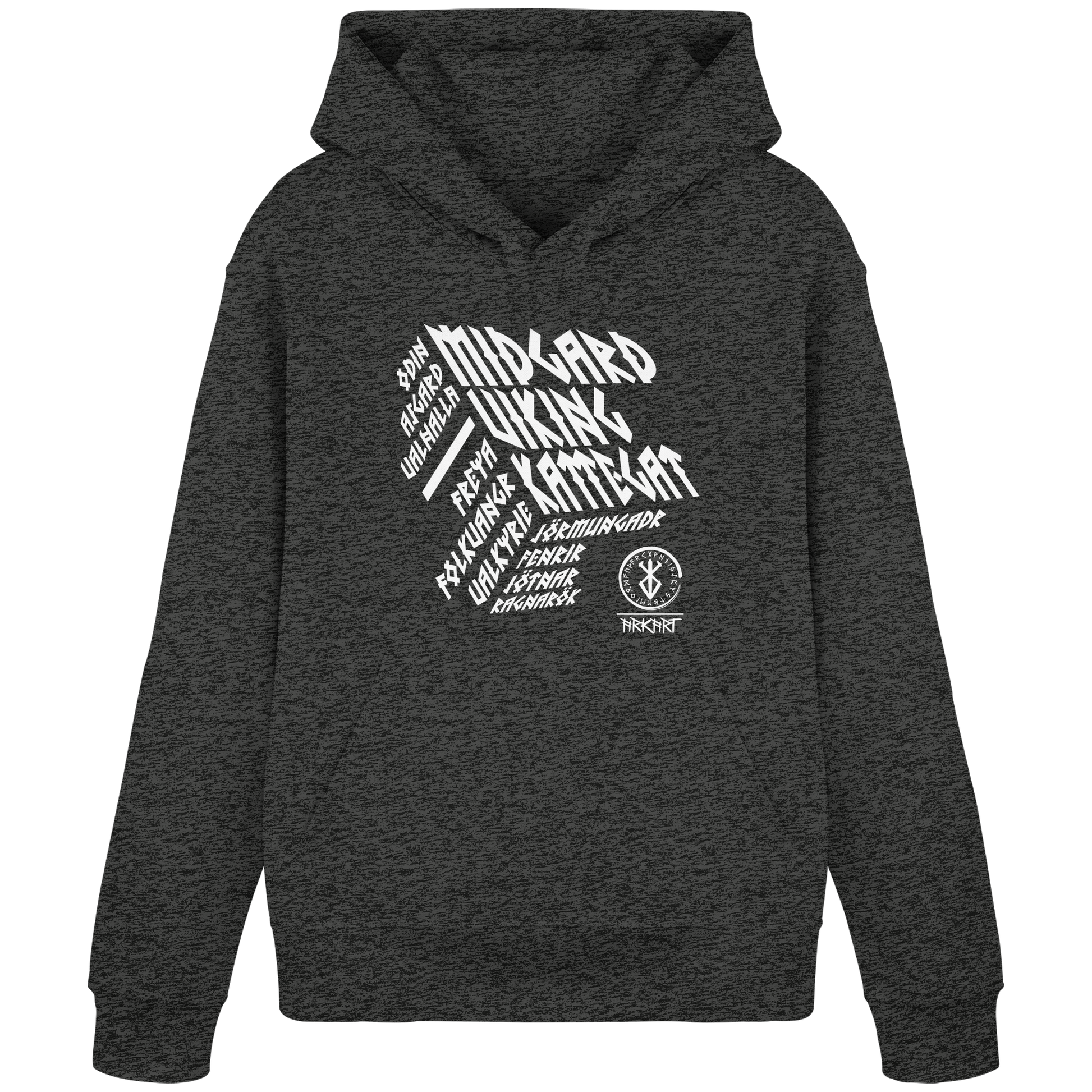 Götternamen, Runen und mythische Orte fügen sich zusammen und formen ein Symbol roher Macht und uralter Ordnung.