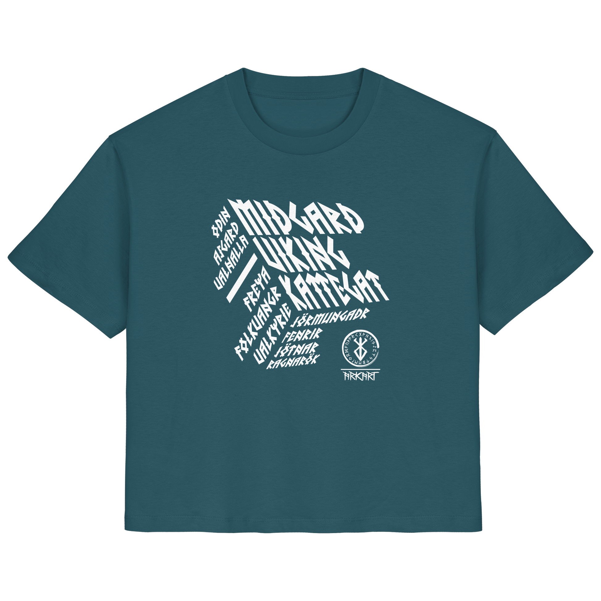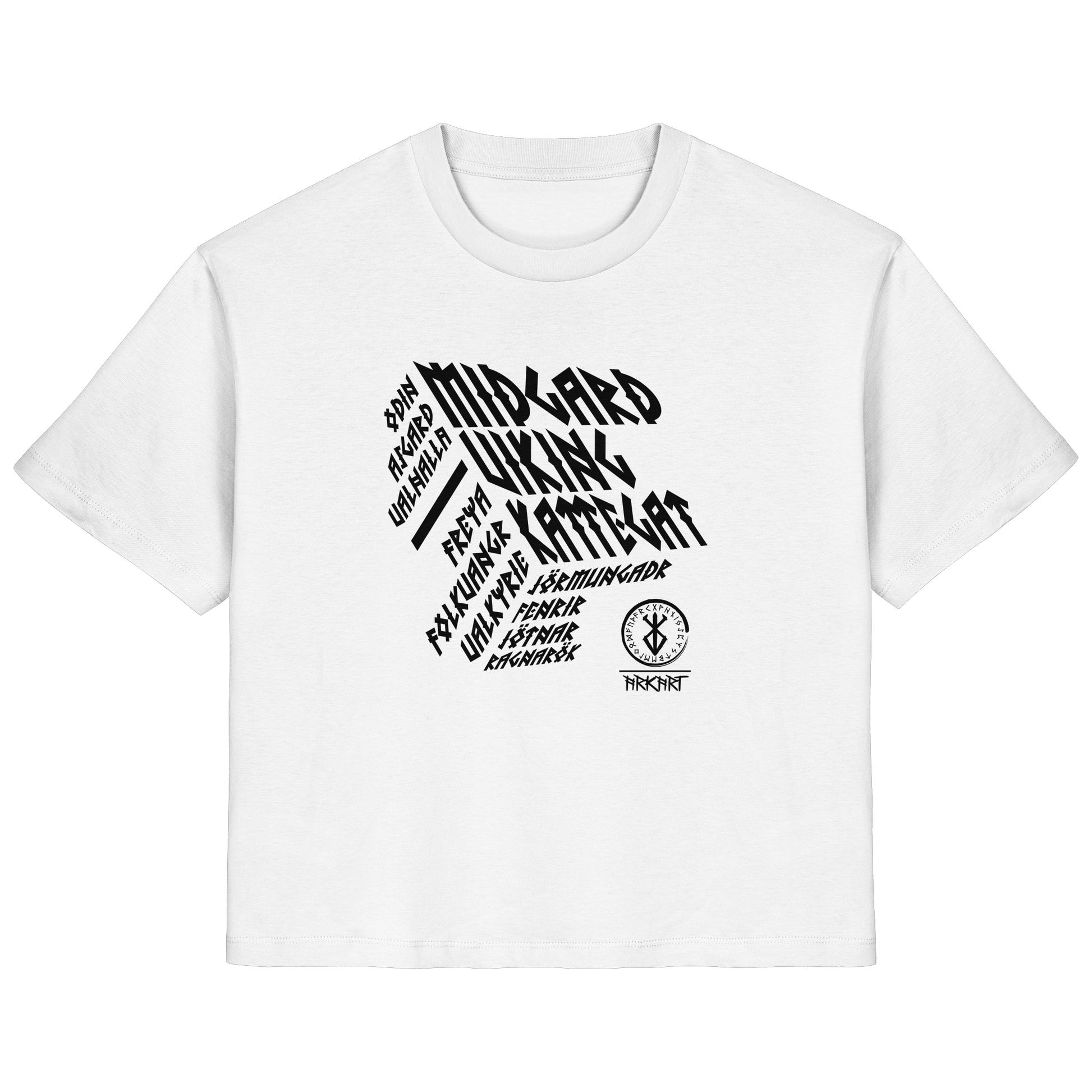 Götternamen, Runen und mythische Orte fügen sich zusammen und formen ein Symbol roher Macht und uralter Ordnung.